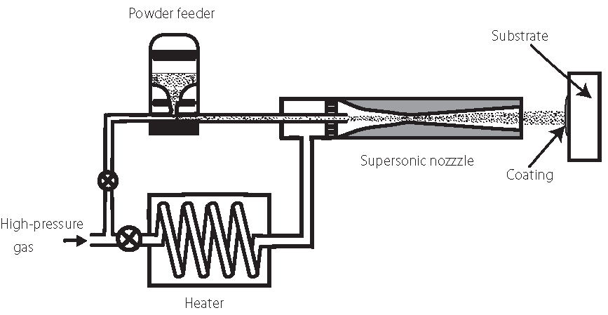 Diagram illustrating the system of a cold-spray gun system. Licensed under CC BY 4.0 via Wikimedia Commons.